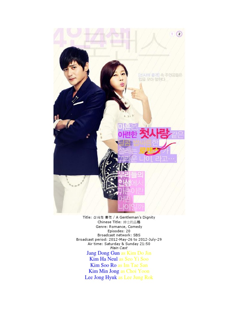 Nonton & download gentleman's dignity (2012) episode 1 drama korea subtitle indonesia di dramacute.live. When i finished a gentleman's dignity, i realized that it's one of those shows that doesn't have a huge amount of plot, but it has a pleasant enough atmosphere that i'm not discounting the (very faint) possibility of revisiting it sometime in the future. Cerita ini termasuk hubungan romantis antara kim do jin, seorang arsitek dengan lidah pedas. 'a gentleman's dignity' is a drama about the careers and love lives of urban professionals. A gentleman's dignity a gentleman's dignity (korean :